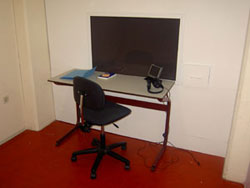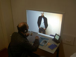 This project is an Interactive Video Installation that I have made together with three other classmates. By using the headset and the videophone the user can interact with the criminal behind the window. The users experiences this as if he is sitting in a real interrogation situation. The Story of the interrogation can go different ways depending on the manner in which the user speaks. When the user gives an aggressive emotional reaction the interrogation will go another way than if the user reacts calmly. The user was given documentation and files to support the narrative. The question asked was given by a doctor on the videophone. The actor behind the window was played by Sieger Sloot.